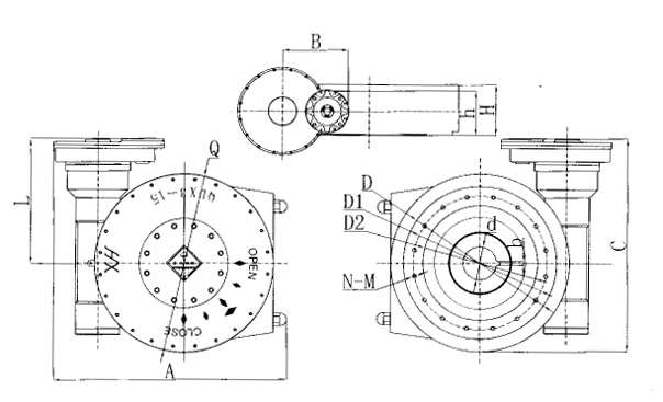 QDX3-C系列部分回轉型閥門電動裝置外形及安裝尺寸