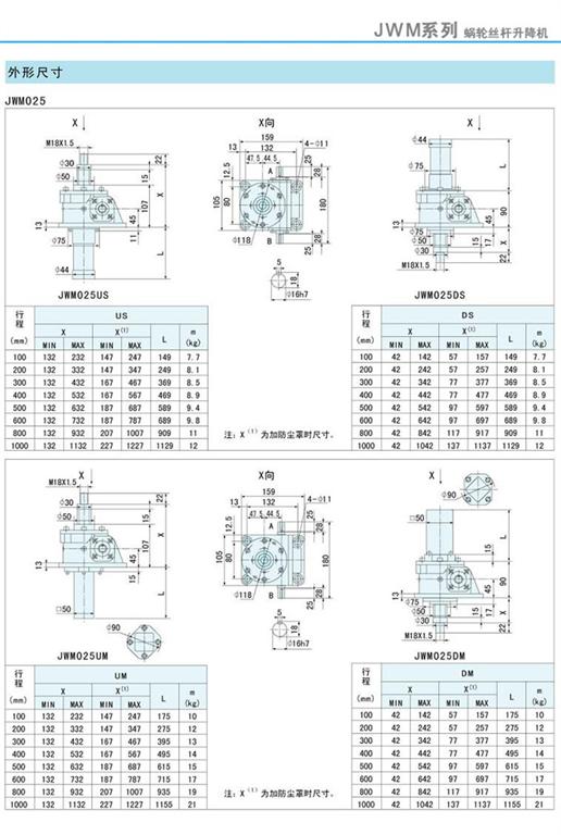 減速機|蝸輪絲桿升降機-JWM升降機025外形尺寸圖-海洋傳動