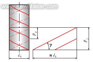 蝸桿的形成原理與螺旋相同,所以蝸桿軸向齒距pa與蝸桿導程pz的關系為pz=z1pa,由下圖可知:
